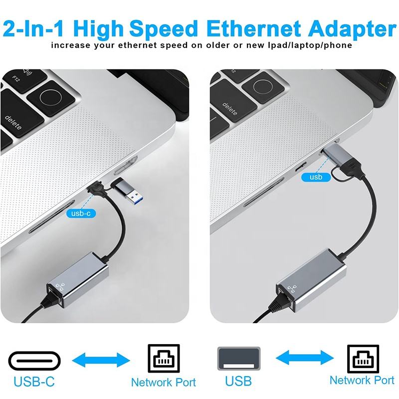 Nombre del producto:Adaptador Ethernet USB 3.0 Tipo C 2 en 1