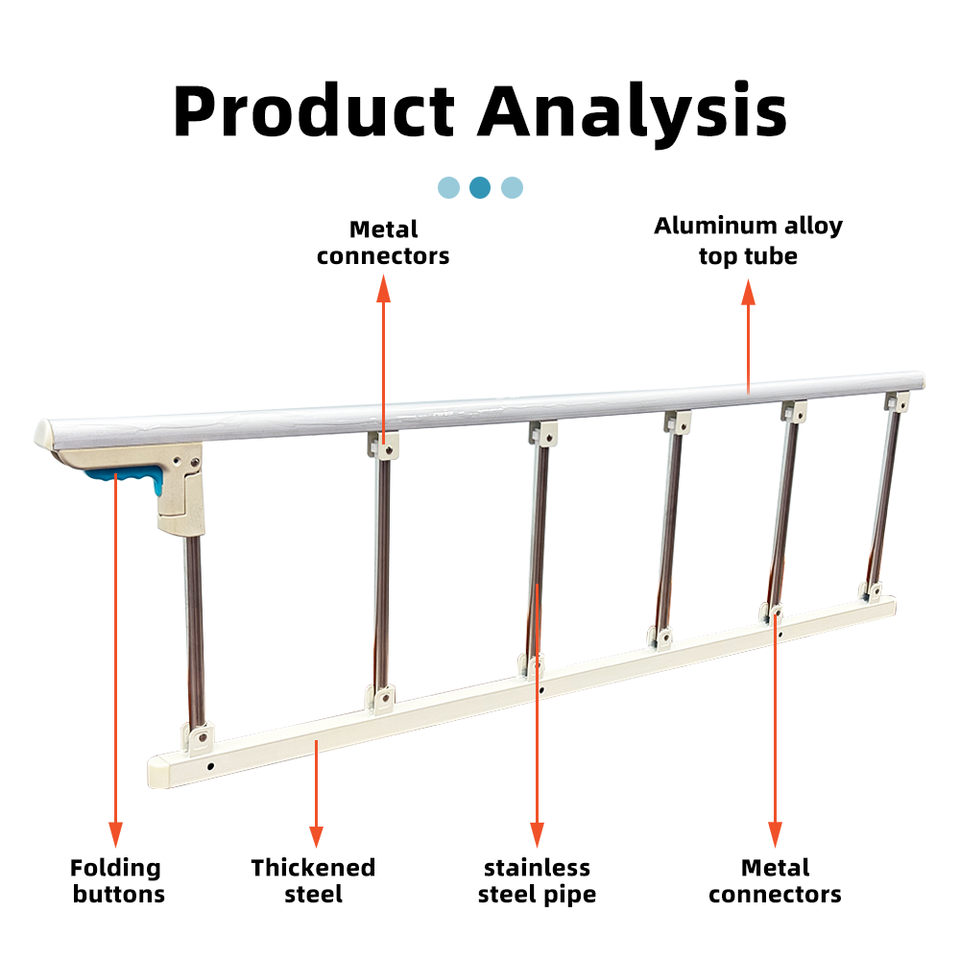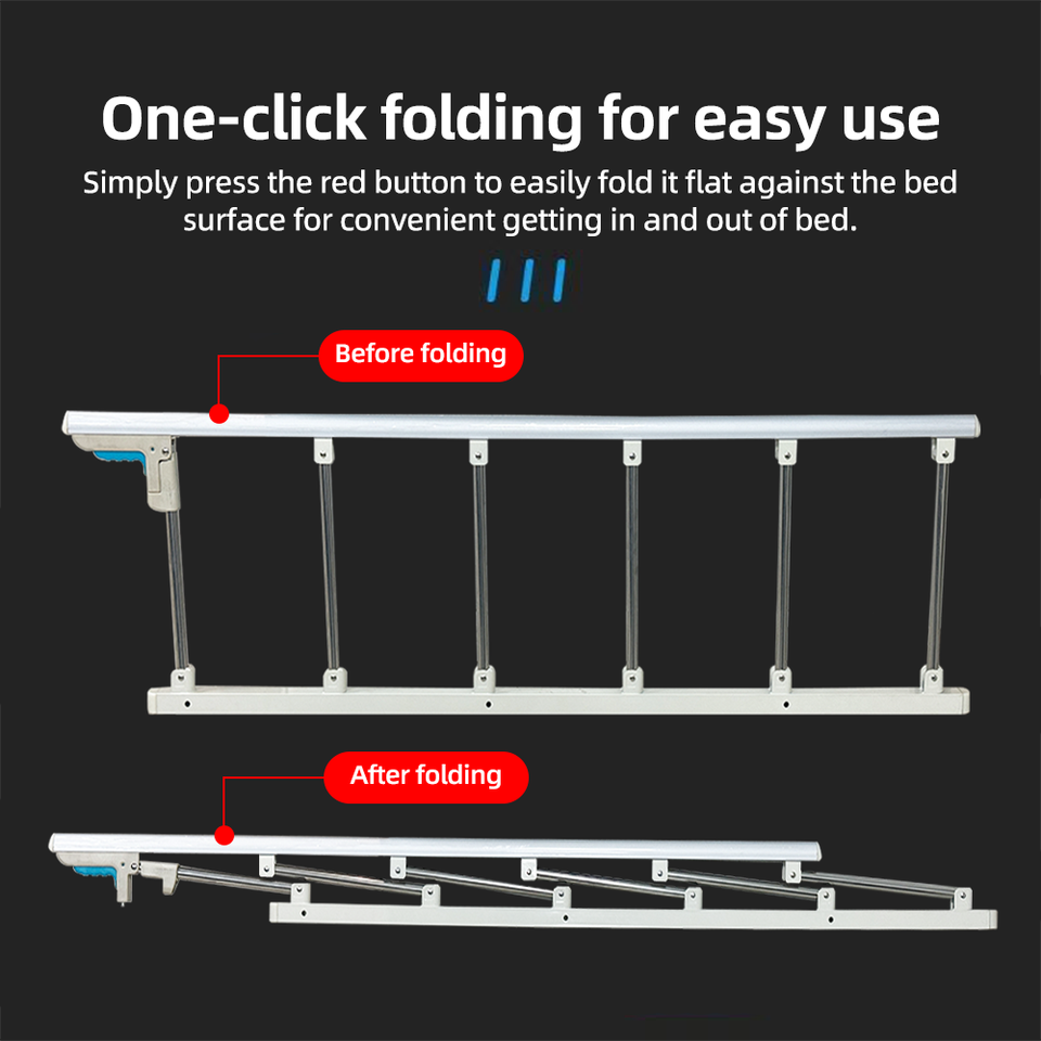 Barandilla de Cama de Aluminio con Asa de Apoyo para Ancianos y Discapacitados, Protector de Seguridad para Cama, Fácil de Plegar para el Cuidado del Cuidador
