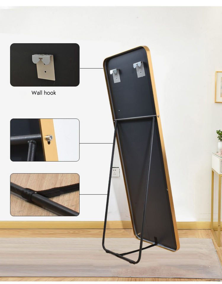 Marco de aluminio rectángulo espejo de tocador de cuerpo completo panel trasero espejos de cuerpo completo tamaño estándar longitud del pie de pie