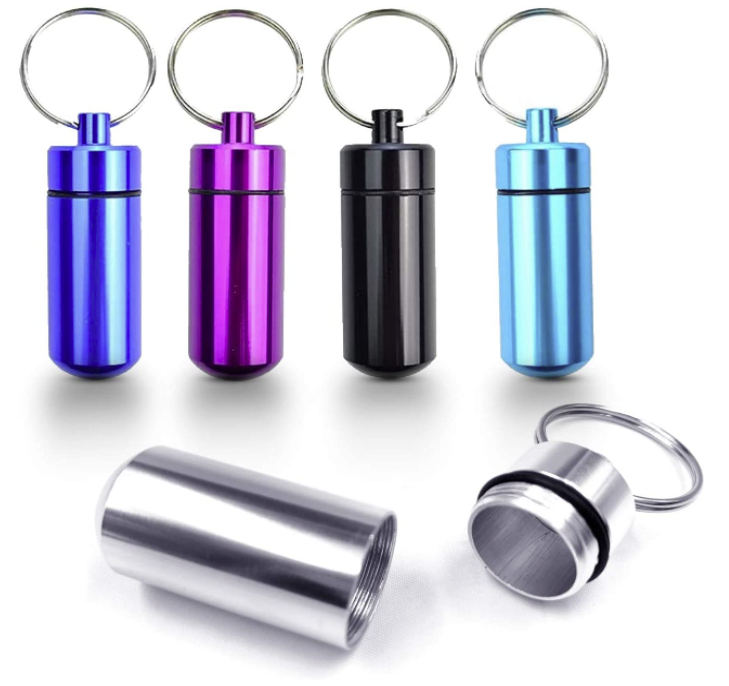 LLavero de aluminio para medicinas, Mini caja impermeable portátil para pastillas de viaje, medicina, soporte de vitamina Contenedor de botella