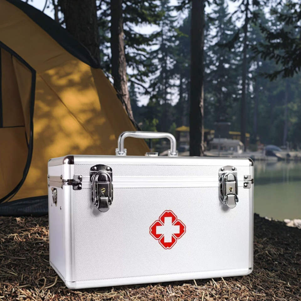 Botiquín de Emergencia Médico de Aluminio, Caja de Primeros Auxilios Portátil para el Hogar, Oficina, Viajes y Actividades al Aire Libre