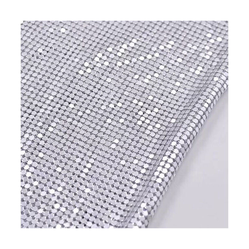 Recorte de malla de aluminio con tela de alambre de tejido liso de diamantes de imitación de cristal para prendas de vestir mejora el arte tejido