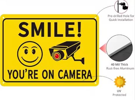 Letrero de metal de aluminio Señal de advertencia informativa 'sonríe Estás EN LA cámara' Durabilidad reflectante para hospitales Escuelas Tamaño personalizado