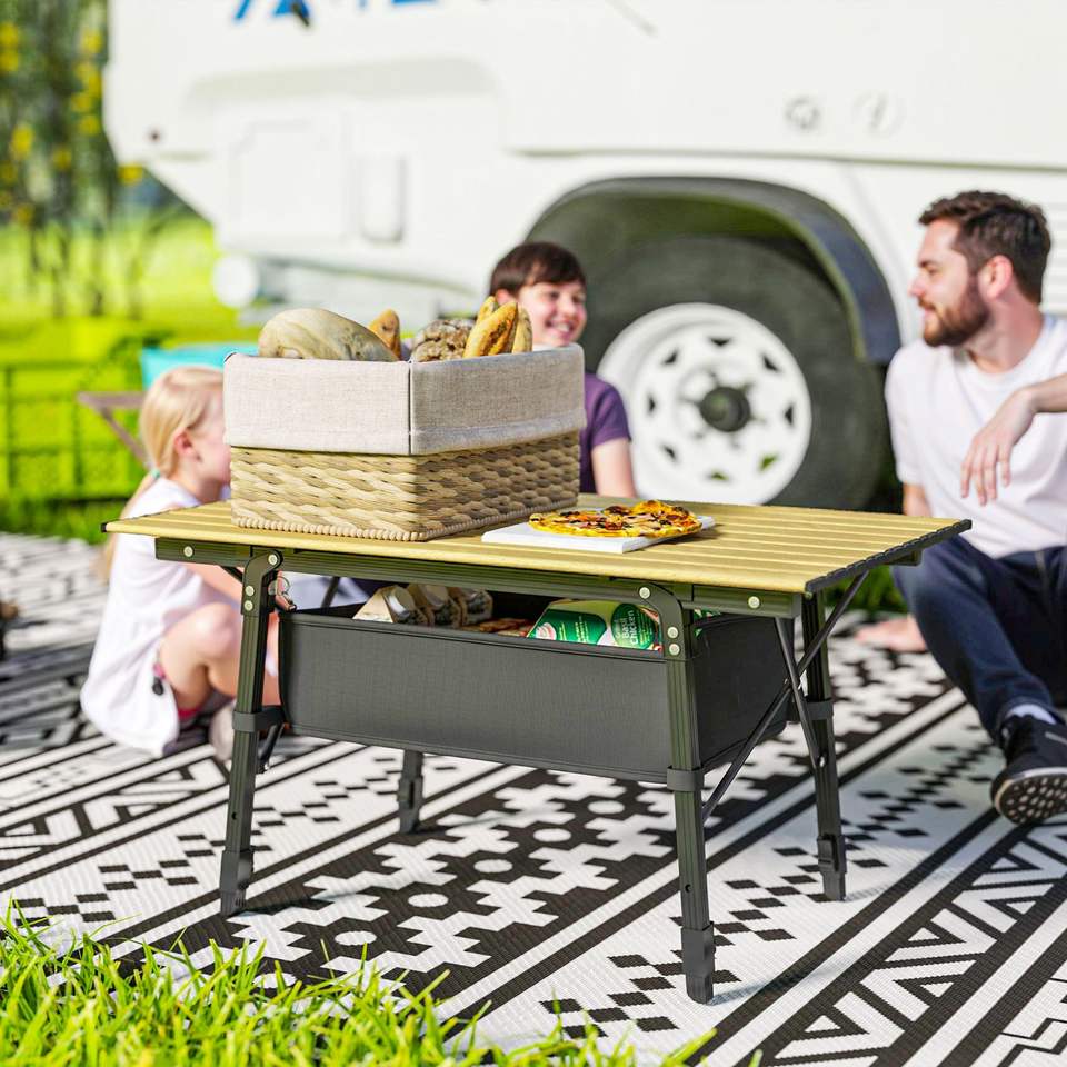 Mesa Plegable Portátil de Aluminio de 3 pies, Rectangular, para Exteriores, Gimnasio, Picnic, Barbacoa, con Bolsa de Transporte, Color Marrón