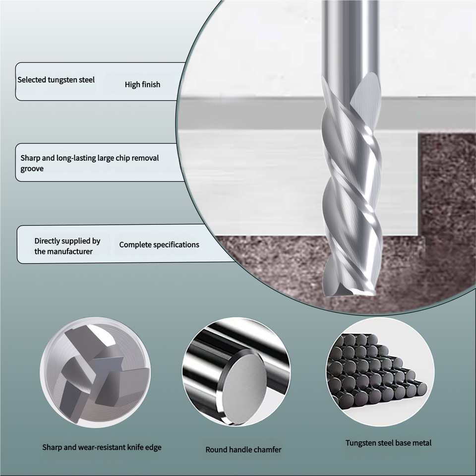 Procesamiento de aluminio sin recubrimiento proporciona varios tipos de 3-6mm 3 flautas Fresas de fondo plano ODM/OEM
