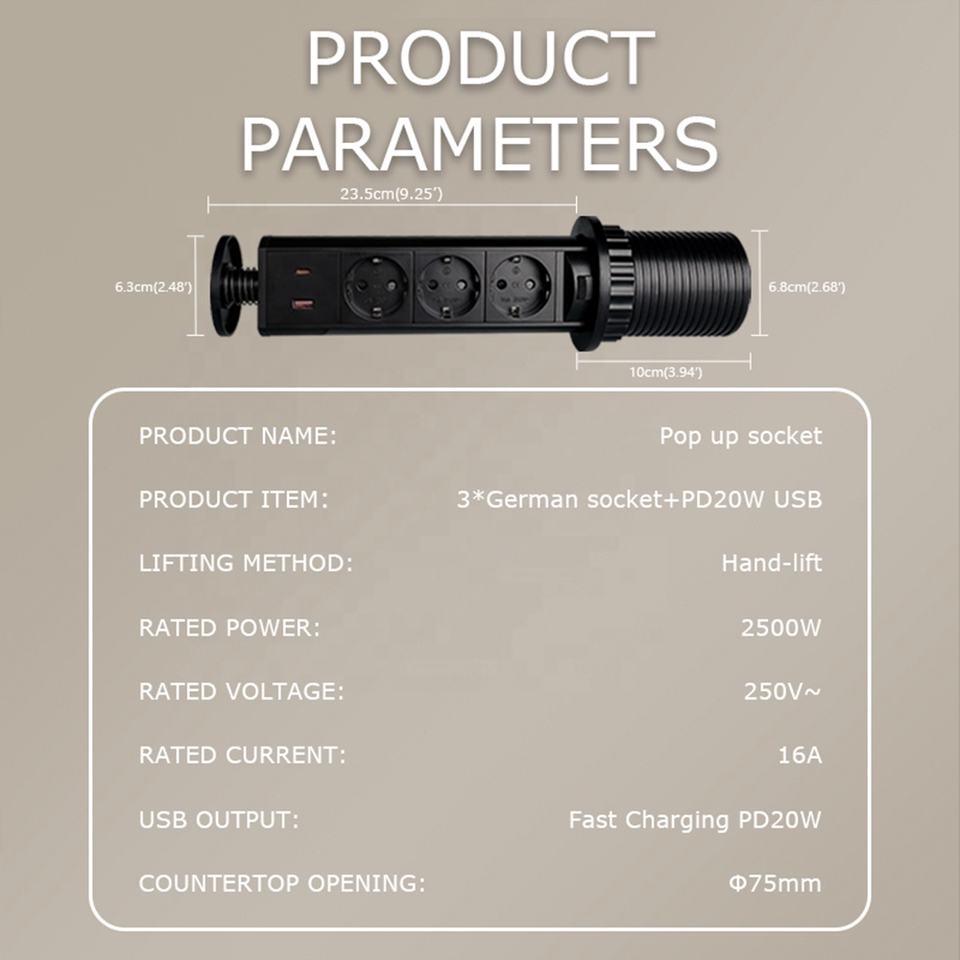 Número de Modelo:MZML-4E-002 3*Germany Socket+Fast Charging USB