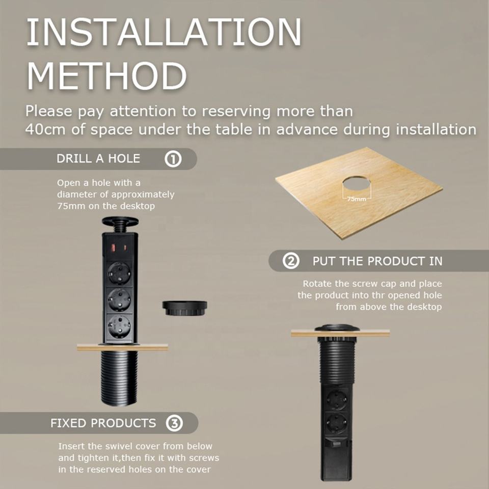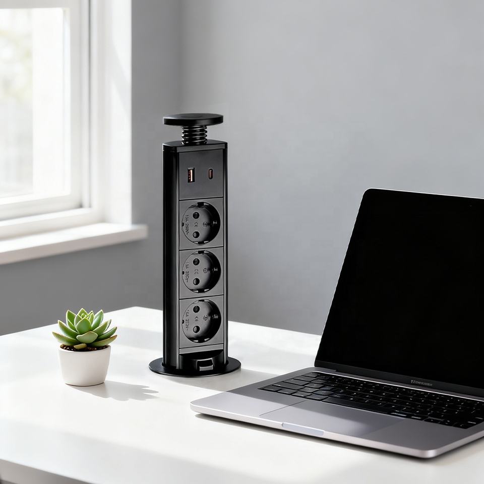 Enchufe de Corriente Alterna de 16A con Carcasa de Aluminio, Estándar Europeo Alemán Schuko, con Cargadores USB de Carga Rápida, Enchufe de Escritorio Extraíble