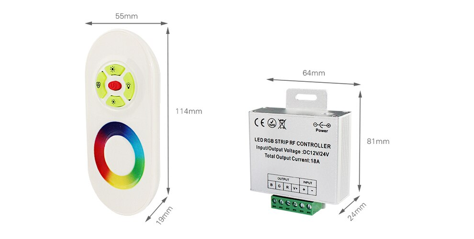 Carcasa de aluminio de RF 433Mhz RF 5 llaves atenuación táctil anillo Control remoto RGB led controlador