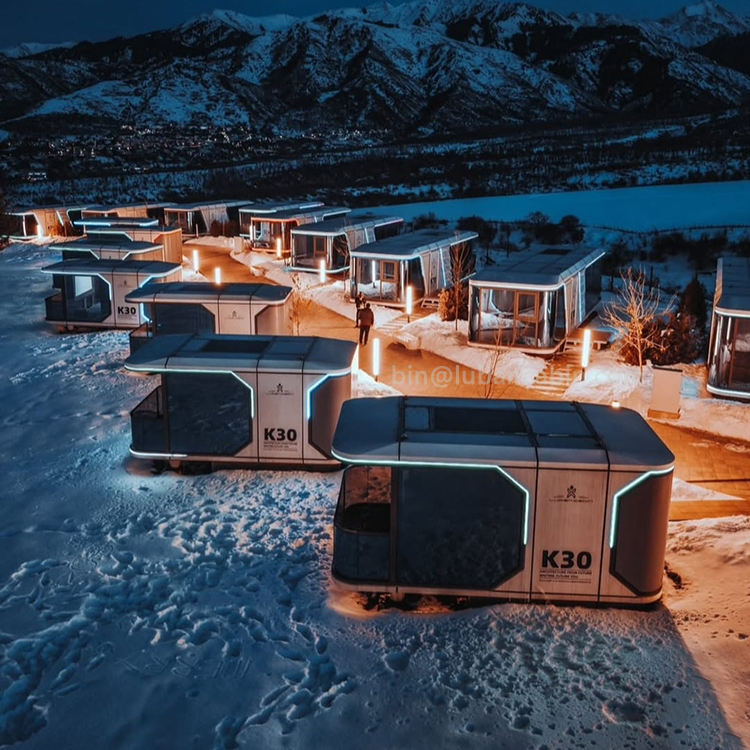 Cápsula espacial de aluminio Mobile Home Stray Cabin Sunshine Room Container Glass Hostel con sonido solar y aislamiento térmico