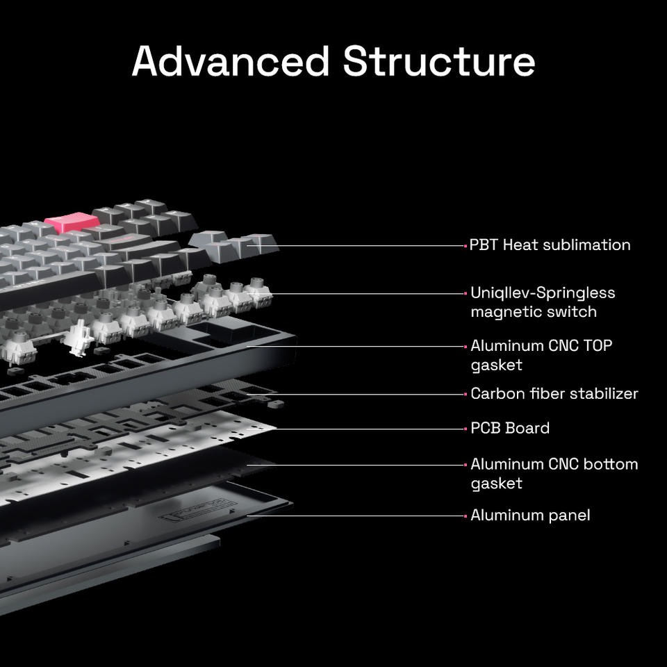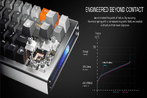 Teclado Mecánico con Levitación Magnética sin Resortes de Aluminio, Retroiluminación RGB, Interfaz USB Tipo-C, Actuación Ajustable de 0.001-3.5mm