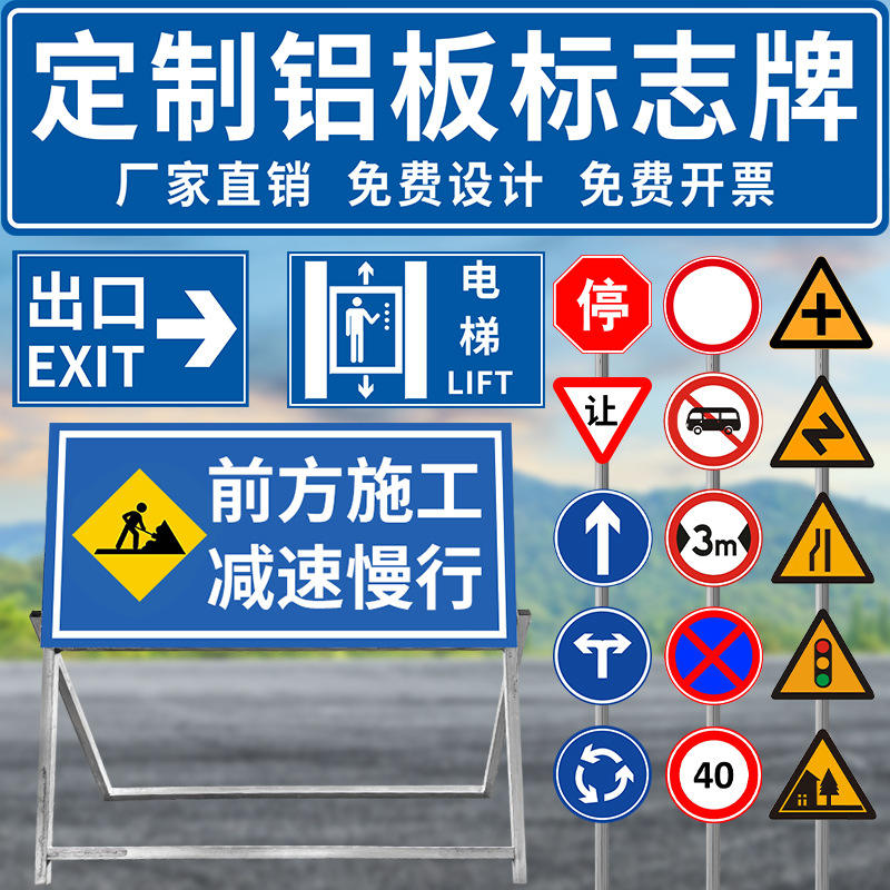 Señales de Tráfico de Aluminio Reflectantes, Personalizables para Construcción, Advertencia, Límite de Velocidad, Salida, Elevación
