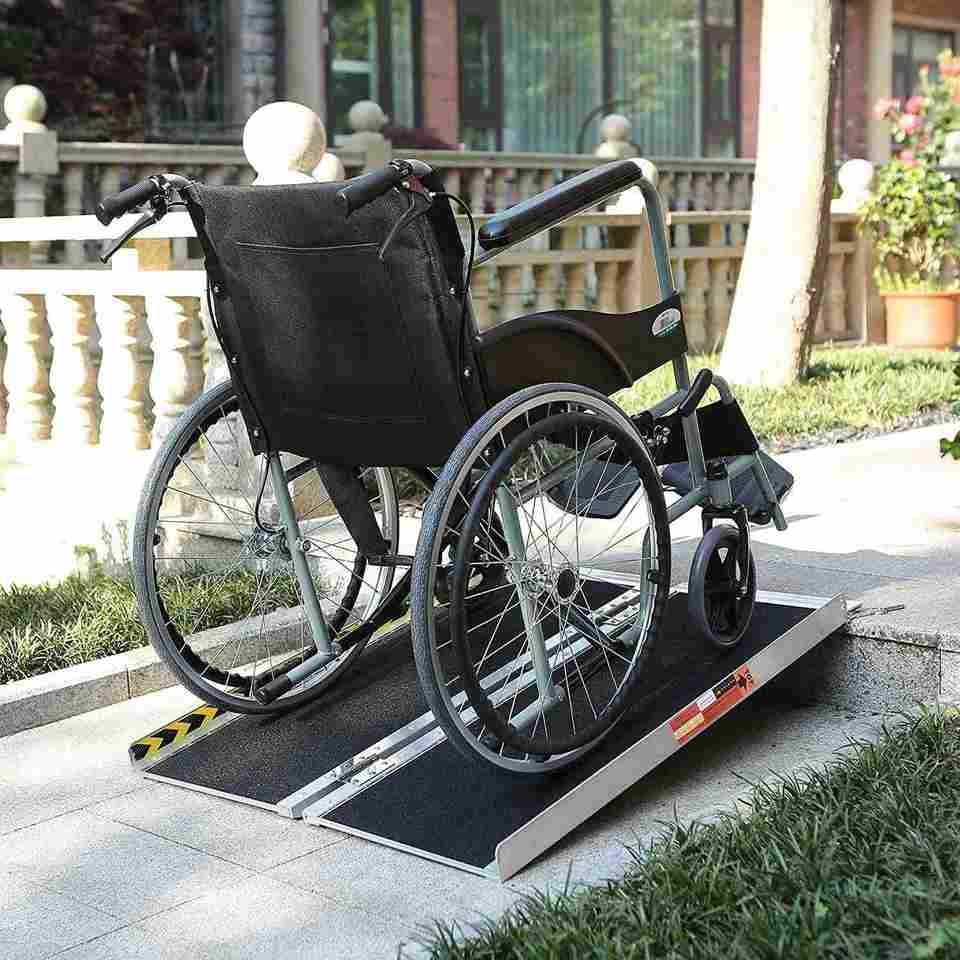 Rampa para Silla de Ruedas de Aluminio con Superficie Antideslizante, Rampa para Umbral de Puerta con Alfombra para Discapacitados, para Hogar, Escalones, Puertas, Escaleras