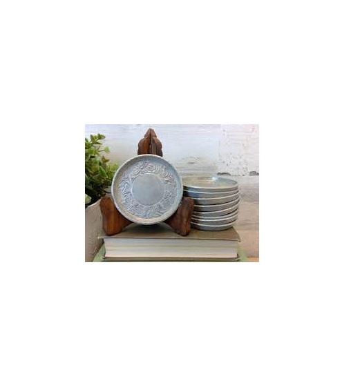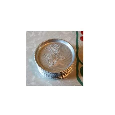 Posavasos de aluminio Posavasos de lujo Forma redonda con soporte de madera Posavasos de diseño floral hechos de aluminio