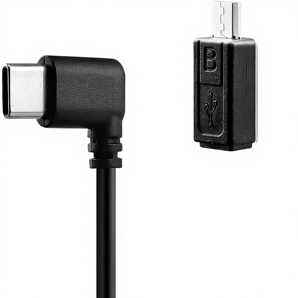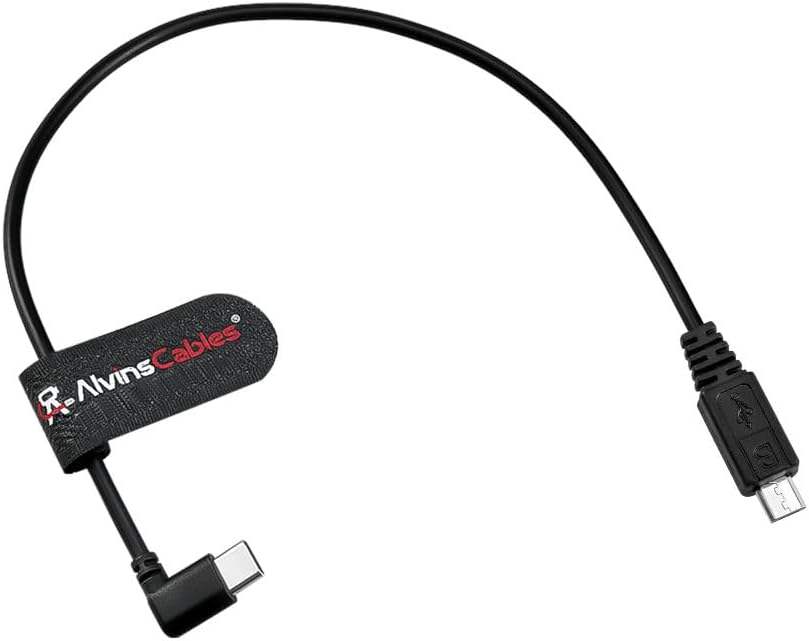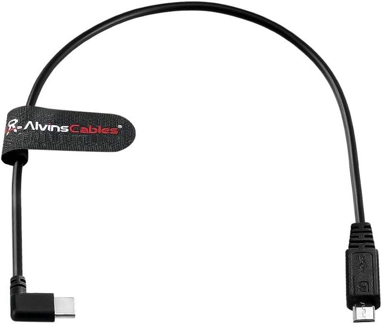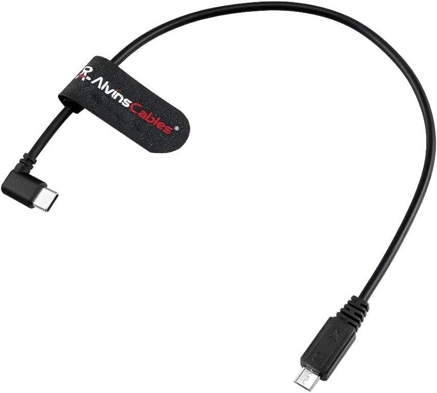 Cable de Control en Ángulo Recto Tipo-C/Micro-USB de Alvin para Modelos DJI SC2/RS2/RS3 - 37 cm (14.5 pulgadas) para Uso con Cámara, Funciones de Encendido/Apagado