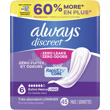 Always Discreet - Toallas absorbentes para incontinencia femenina, absorción extra fuerte, longitud regular, toallas posparto, 33 unidades (paquete de 2)