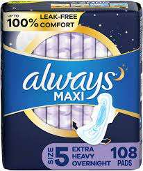 Almohadillas femeninas Always Radiant para mujer, tamaño 4 absorbencia nocturna, paquete múltiple, con espuma flexible, con alas, perfumadas, 20 unidades x 3