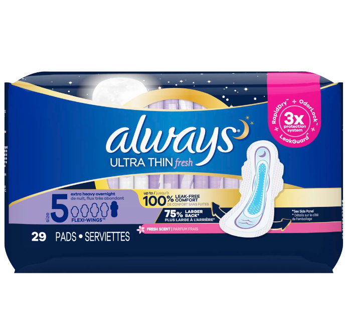 Almohadillas femeninas Always Radiant para mujer, tamaño 3, flujo extra pesado, con alas, perfumadas, 22 Ct