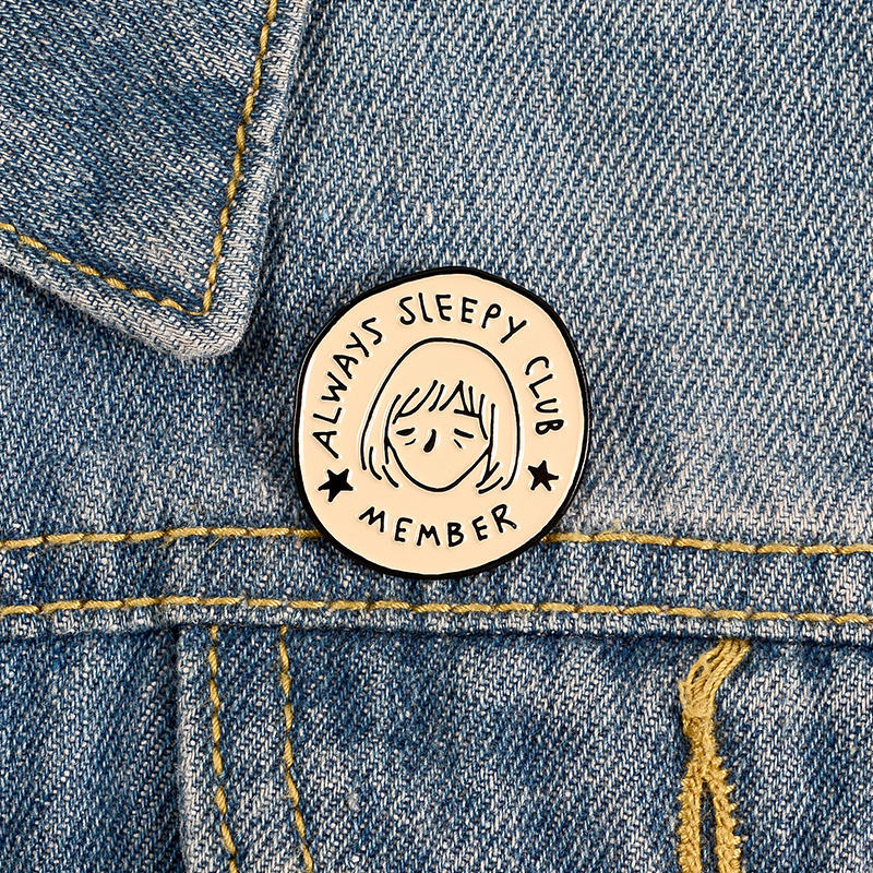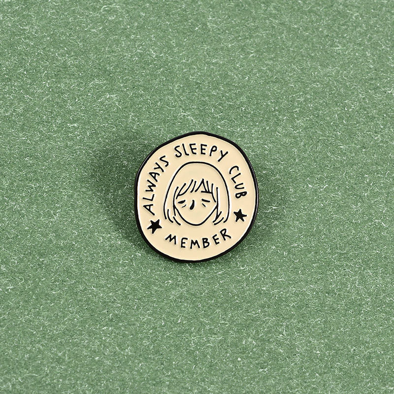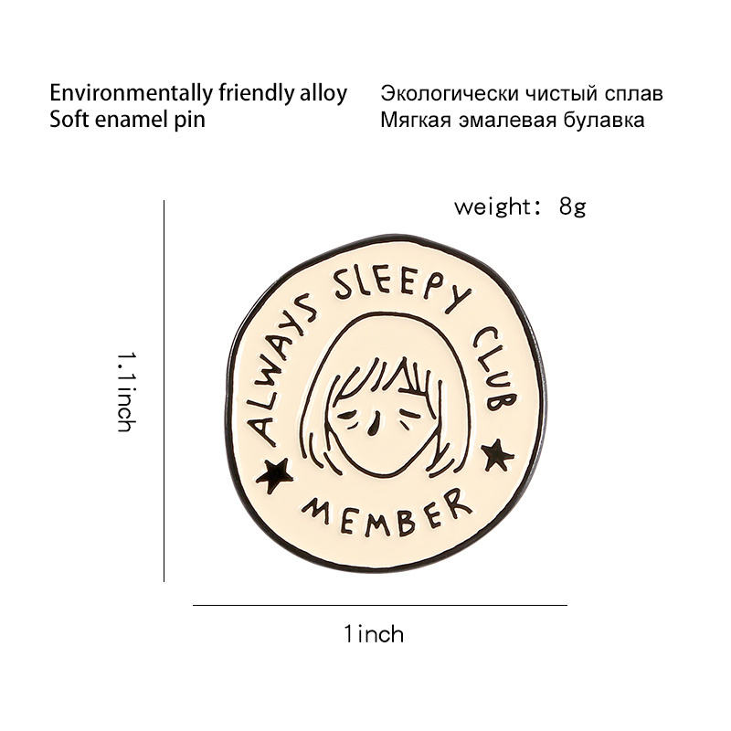 Pin esmaltado siempre durmiente, broche de insignia de miembro de Club redondo personalizado para bolso, ropa, Pin de solapa, regalo de joyería divertido para amigos