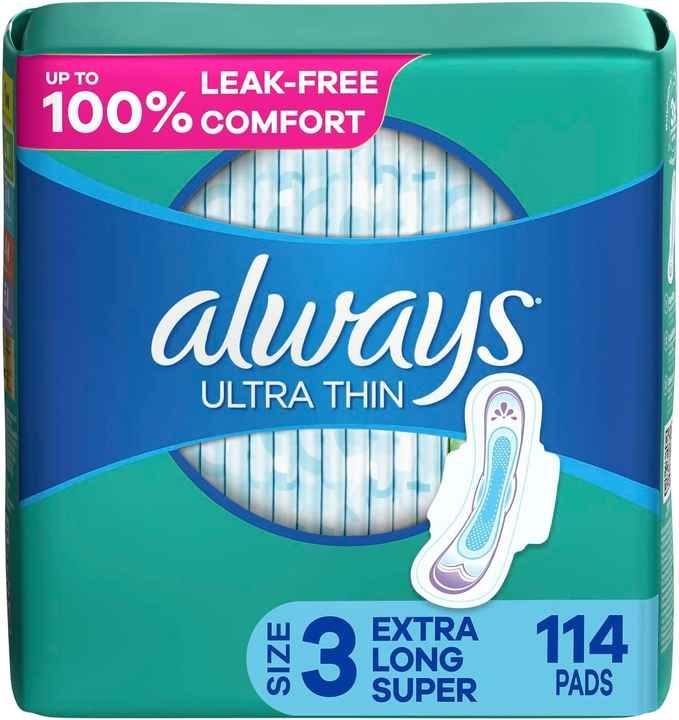 Almohadillas Always Ultra Thin para mujer, absorción regular, tamaño 1, alas sin perfume, 44 unidades x 3 paquetes (132 unidades en total), algodón