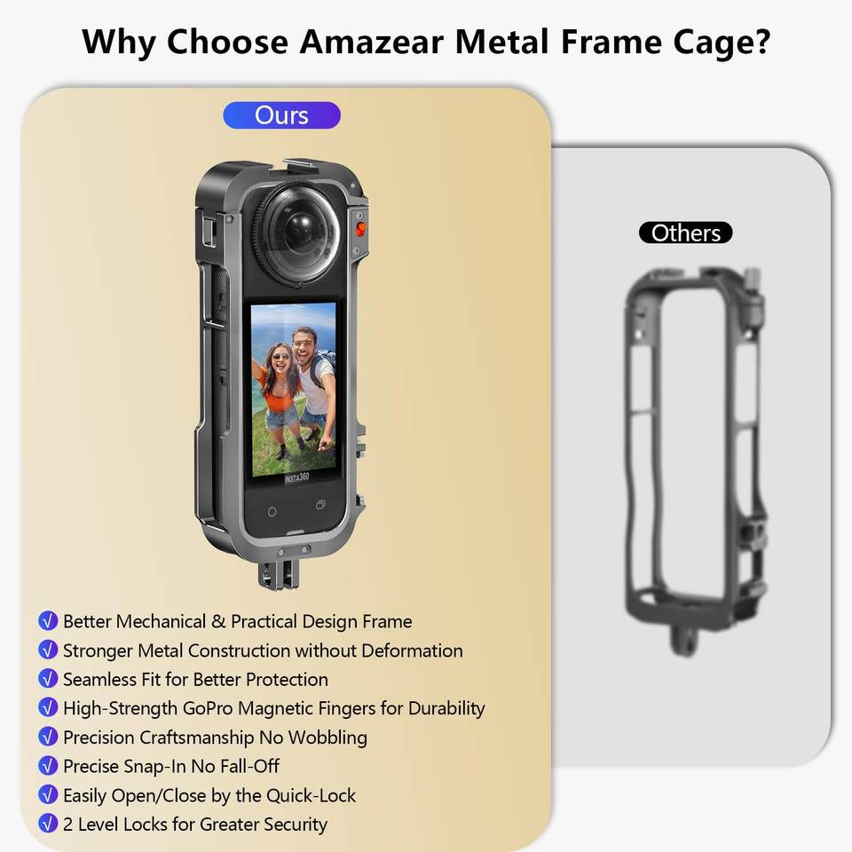 Jaula Metálica de Aluminio Amazear para Insta360 X4 | Marco Protector de Liberación Rápida con Accesorios de Zapata Fría