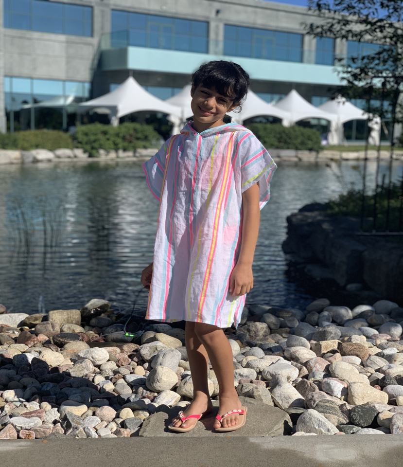 Vestido bohemio multicolor de lino suave para verano, caftán a rayas con estilo de campana y mangas cortas, perfecto para campamento