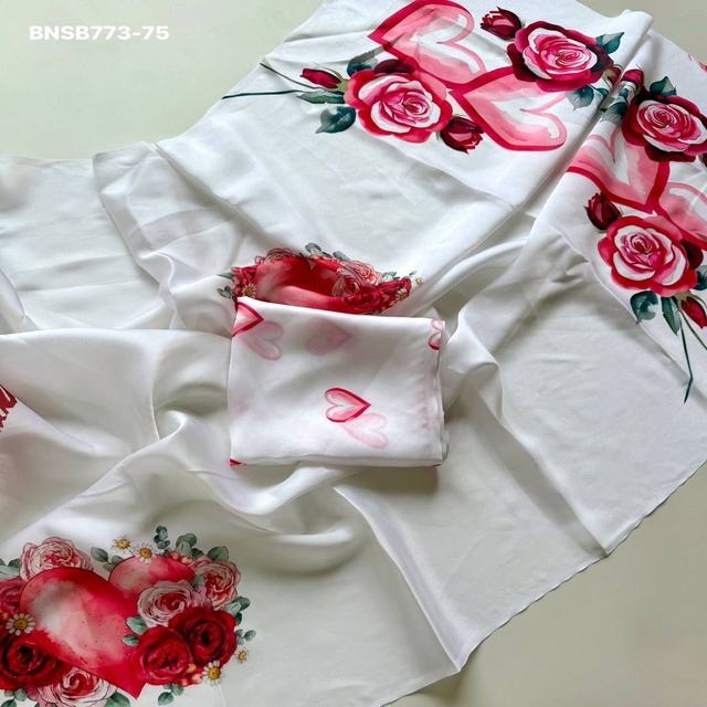 Saree y Blusa de Georgette Satinado con Estampado Digital de Corazones