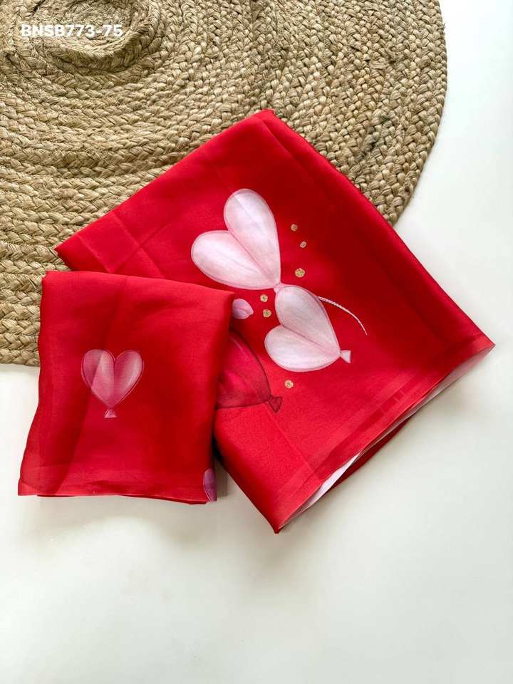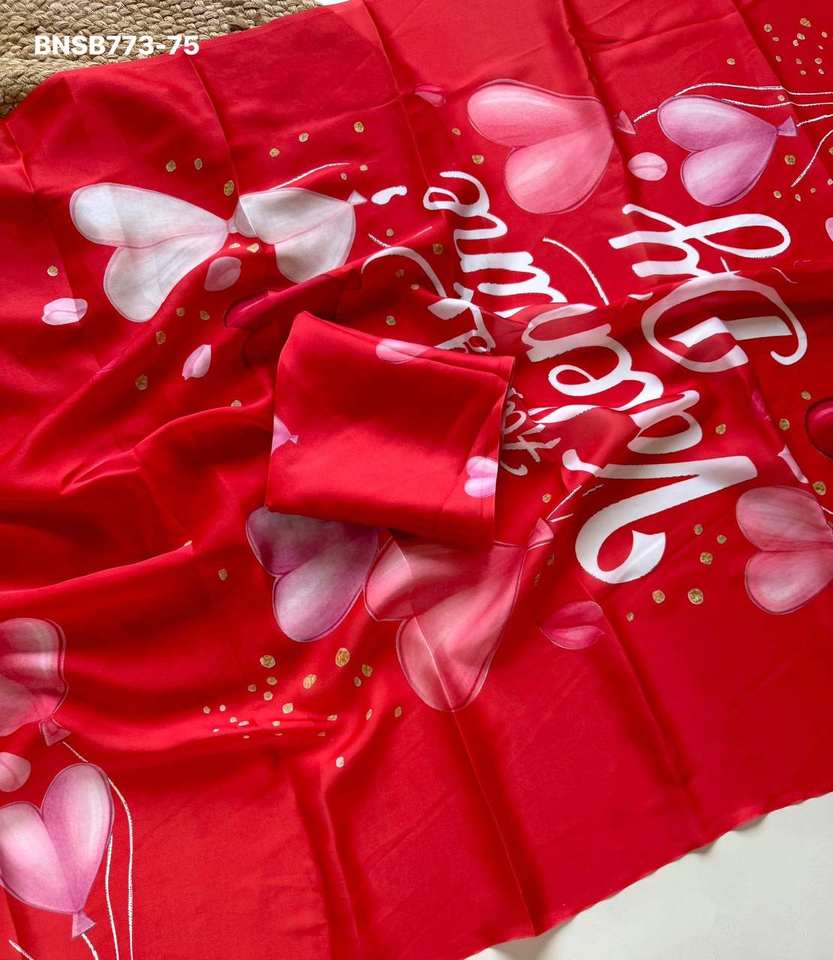 Última Colección de Blusas de Saree de Satén Georgette con Impresión Digital de Corazones, Aspecto Magnífico, Proveedor de Surat