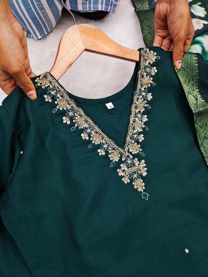 Nombre del producto:Increíble color de seda romana Premium con trabajo a mano Kurti Pant y Dupatta