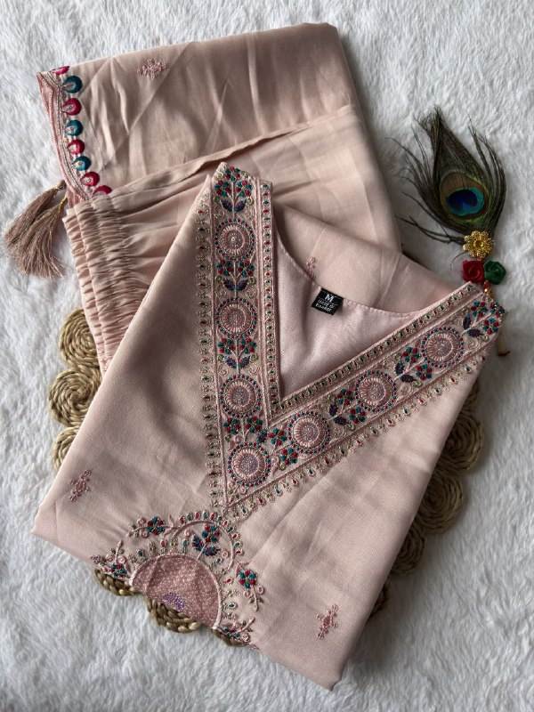 Nombre del Producto:Pantalón Kurti Dupatta de Seda Romana con Bordado y Lentejuelas.