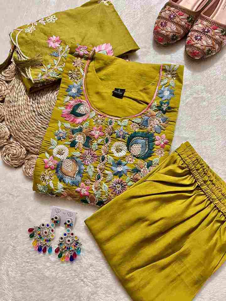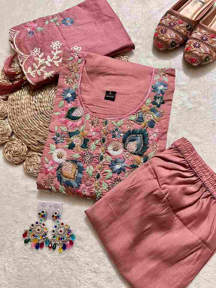 Nombre del producto:Increíble color de seda romana con el trabajo a mano Kurti Pant y Dupatta