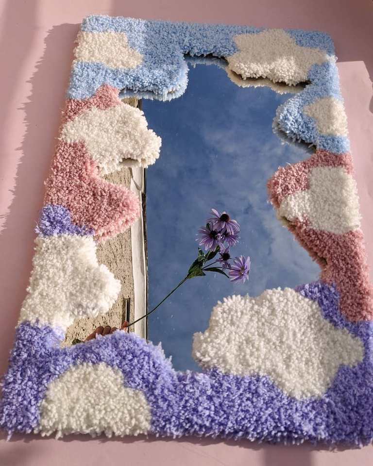 Increíble artesanía púrpura puesta de sol punzón espejo Retro escandinavo Grafic marco tufted espejos para pared decoración del hogar