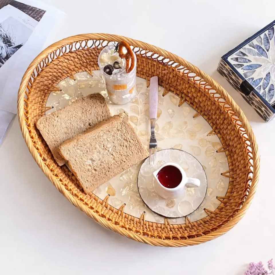 Bandeja Rectangular de Ratán con Diseño Impresionante, Ecológica, Apta para Lavavajillas, Duradera, Pulida, Moderna, para Fiestas