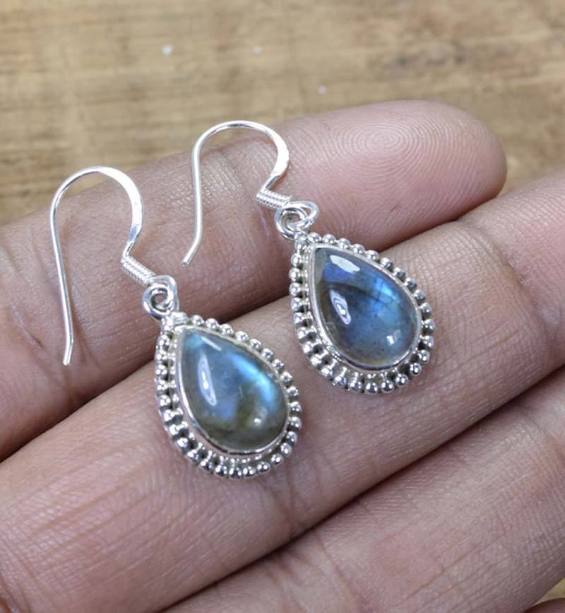 Pendientes de Plata de Ley con Labradorita de 5x8 mm, Forma de Pirámide, Engaste de Bisel, Estilo Vintage, Certificado IGI, Regalo para Bodas y Fiestas