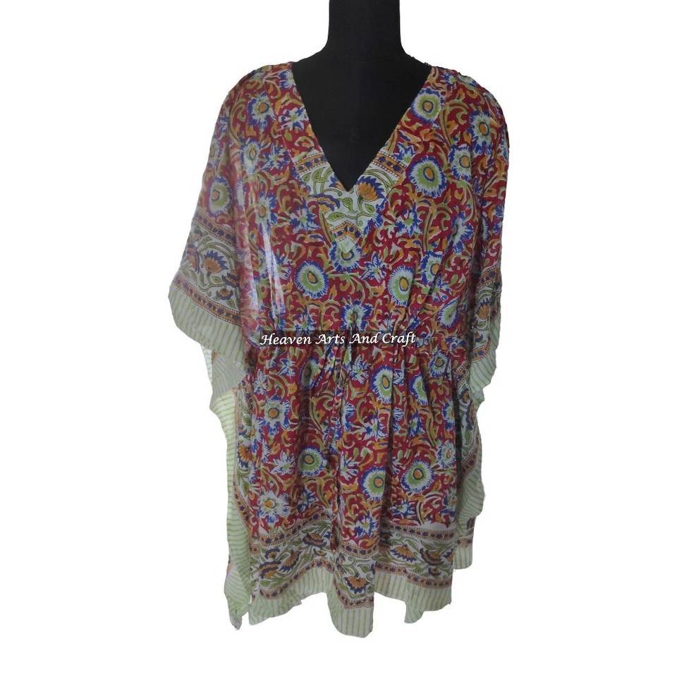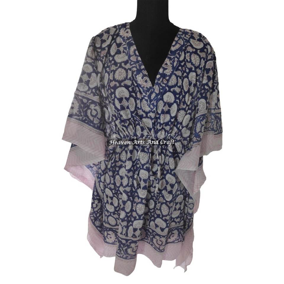 Increíble Nueva Colección de Verano, Kaftán Corto de Algodón Estampado a Mano, Vestido de Noche para Mujer, Bonito y Cómodo para Noches Acogedoras