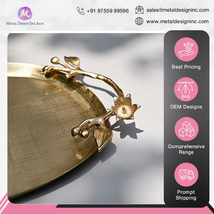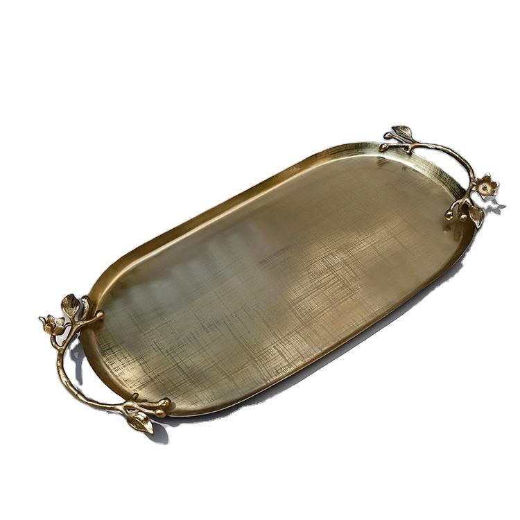 Nombre del producto:Bandeja ovalada de latón dorado Bandeja ovalada floral