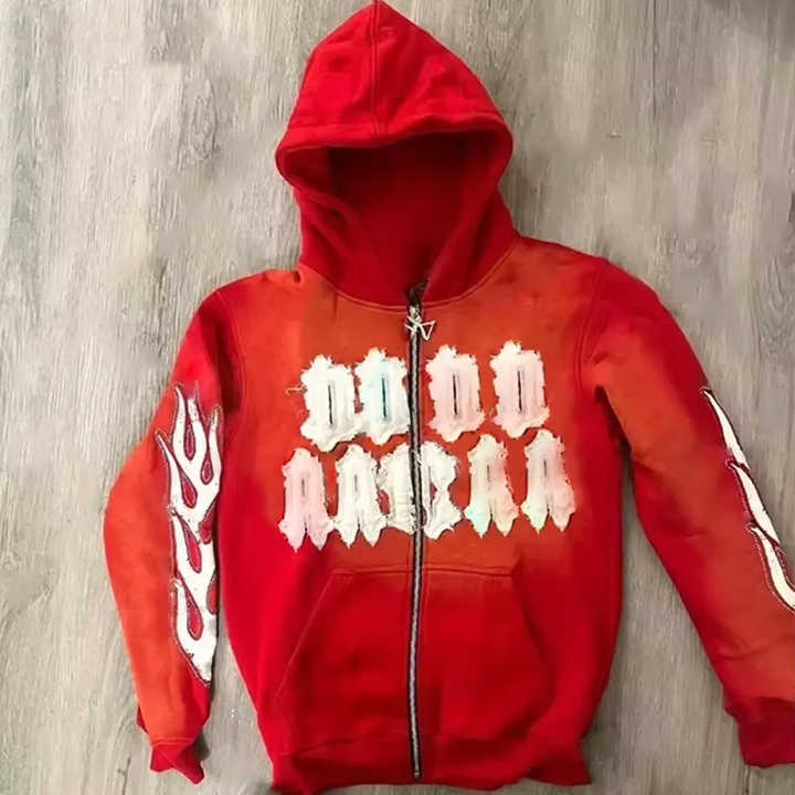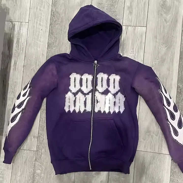 Estilo increíble de Stitchmode parche desgastado bordado Vintage envejecido apliques costura 500gsm sudaderas con capucha desgastadas hombres