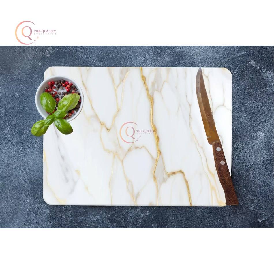 Increíble bloque de cortar de mármol blanco con estampado dorado y vajilla de calidad superior, tabla de carnicero Natural para el suministro del hogar y la cocina