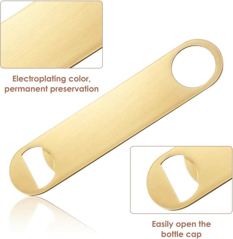 Amazon superventas logotipo láser personalizado negro plata espacios en blanco barra de acero inoxidable hoja plana abrebotellas de cerveza para regalo