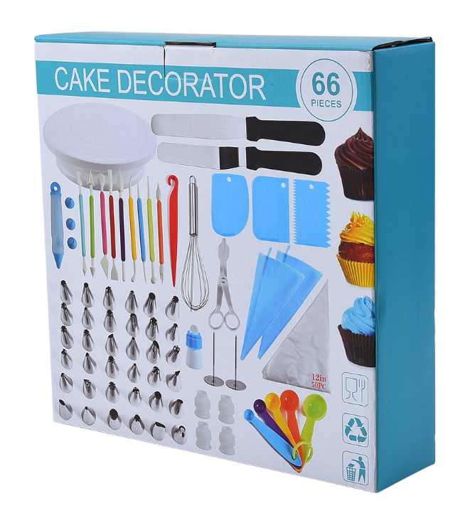 Conjunto de herramientas de repostería para principiantes, suministros de decoración de pasteles con tocadiscos, 30 boquillas y bolsas, espátula, 66 Uds.