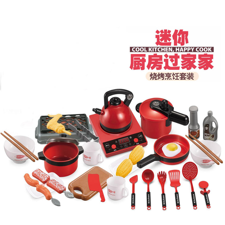 Amazon vendedor caliente 36 pcs juguete cocina juego barbacoa juego de simulación de grill comida cocina feliz juguetes de cocina para niños