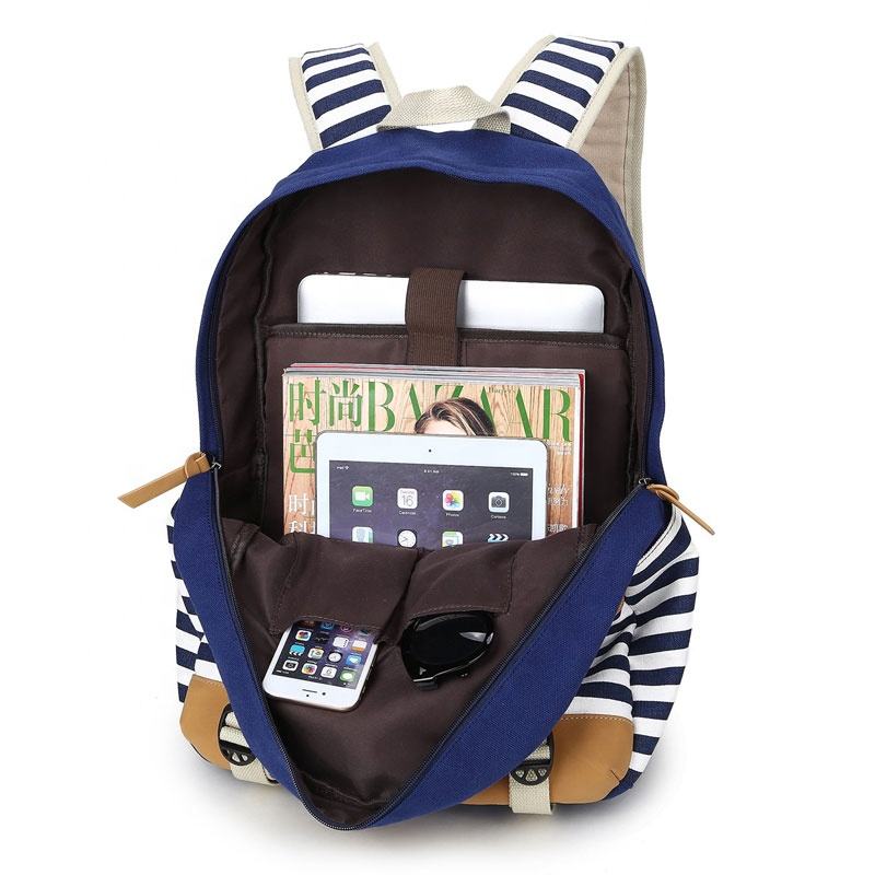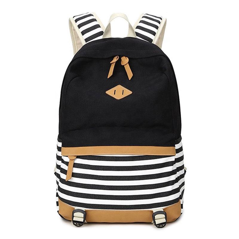 Amazon Venta caliente Chica Mochila de lona a rayas Mochila escolar para niñas 2024