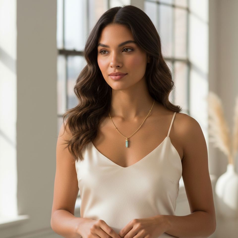 Nombre del Producto:Colgante de Amazonita Chapado en Plata con Cadena de Plata de Ley