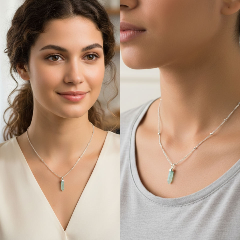Product Name:Amazonite Silver Plated Pendant Sterling Silver Ball Chain Necklace