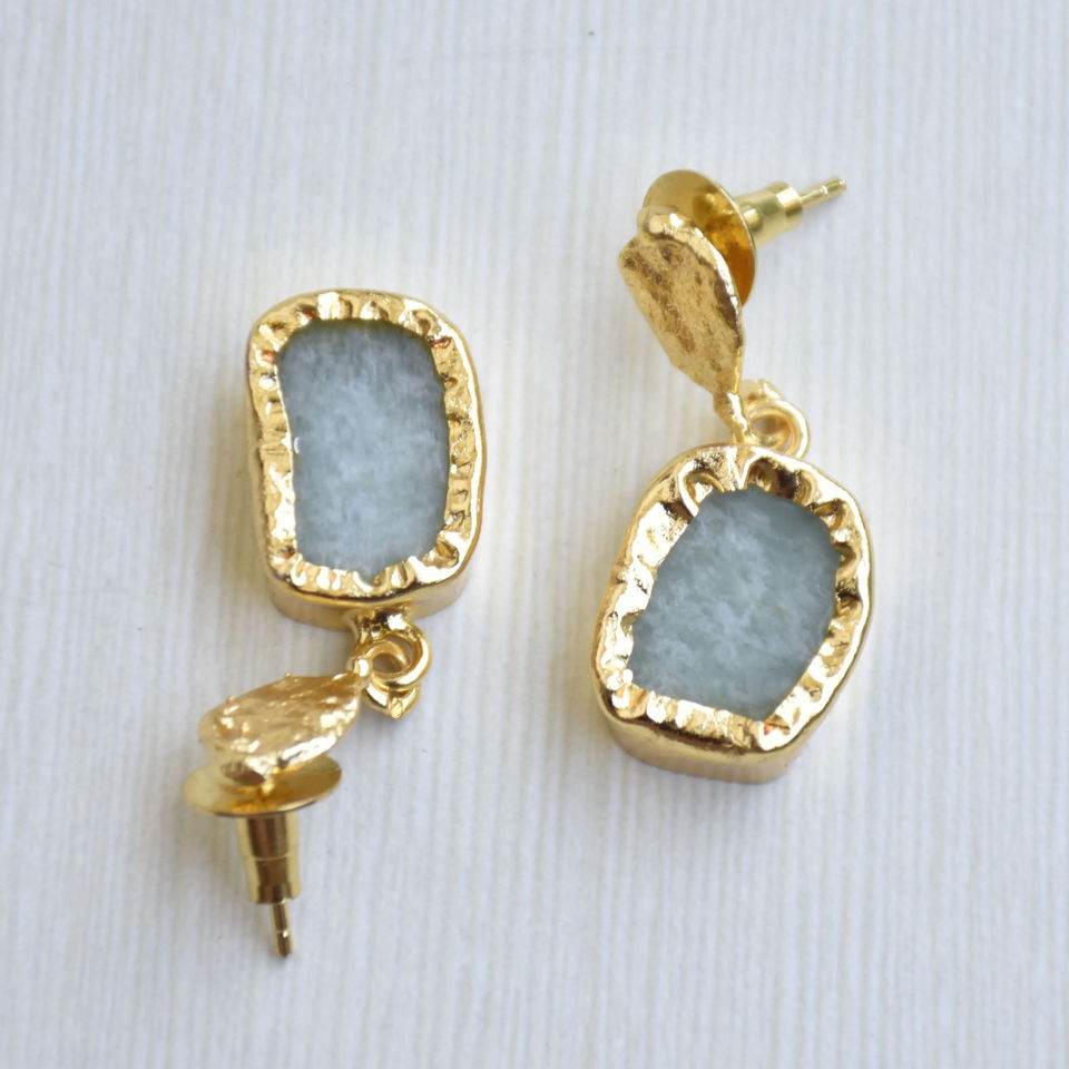 Pendientes de Latón de Exportación al por Mayor, Joyería Auténtica con Piedras Preciosas, Acabado Chapado en Oro de 18K, Pieza de Moda Lista para Enviar
