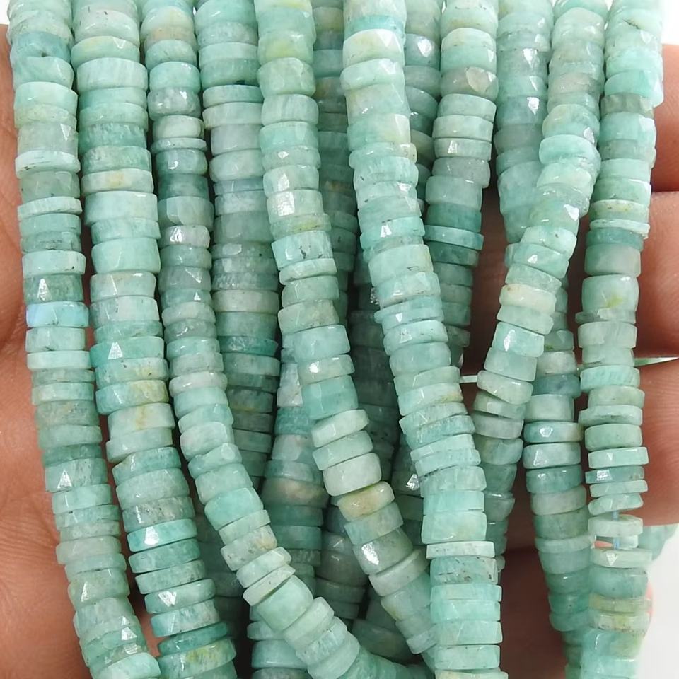 Cuentas de Amazonita Facetadas Hechas a Mano, Forma de Botón de Moneda, Piedras Sueltas para Joyería, Suministros al por Mayor, Hilo de 8 Pulgadas