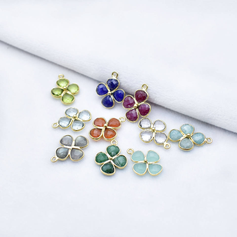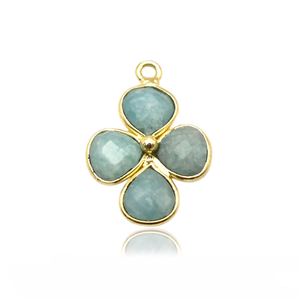 Encanto de diseño de flor de amazonita-Colgante de bisel chapado en oro con piedras preciosas en forma de corazón, colgante pequeño de cuatro piedras para la fabricación de joyas