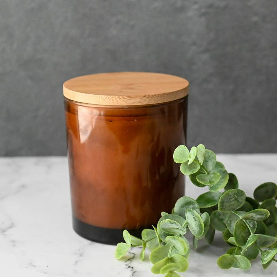 Frasco de Vela de Lujo Color Ámbar - 14.5 oz Resistente al Calor con Tapa Metálica para Decoración Navideña del Hogar
