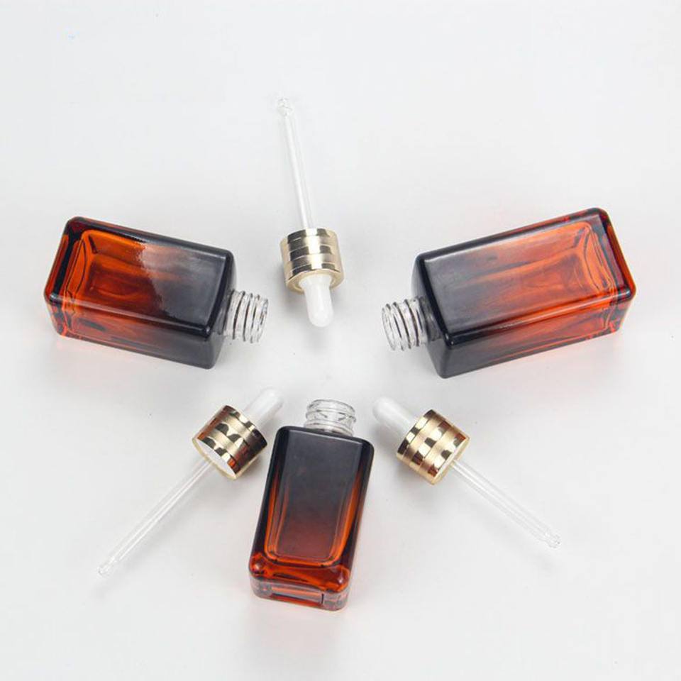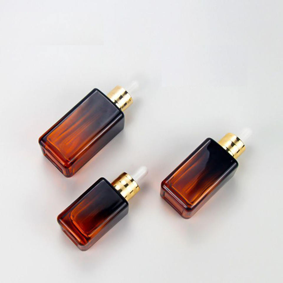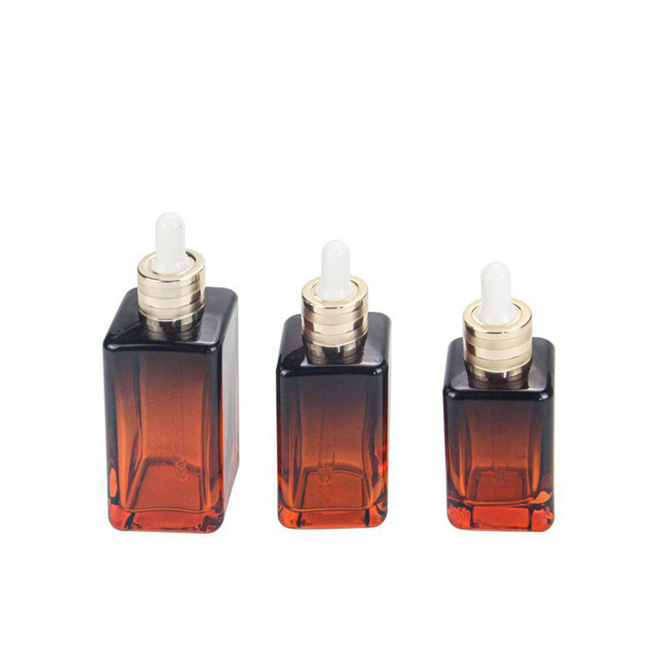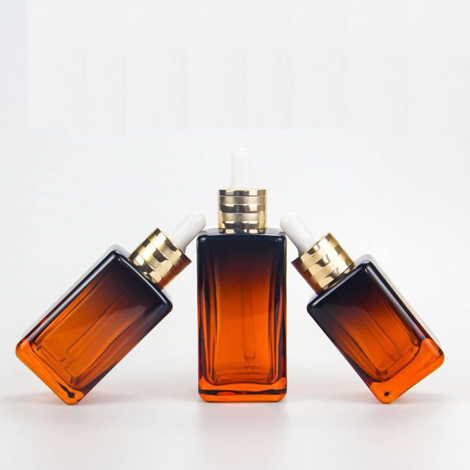 Amber Gradient Square Cosmetic 50ml 70ml 100ml Essential Glasses Oil Glass Dropper Bottles With White Dropper