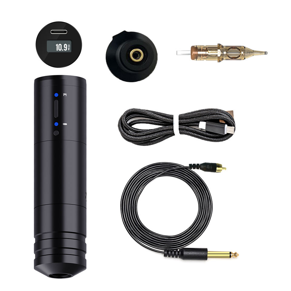 Máquina de Tatuar Inalámbrica Ambition Ninja, Rotativa, con Batería de Cartucho, con Fuente de Alimentación de 1650 mAh, Motor Japonés sin Núcleo, Pantalla LCD Digital