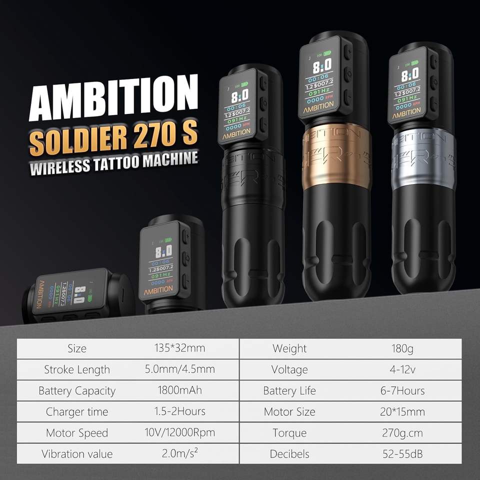 Nombre del producto:Máquina inalámbrica del tatuaje del soldado Max de la ambición
